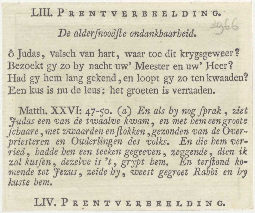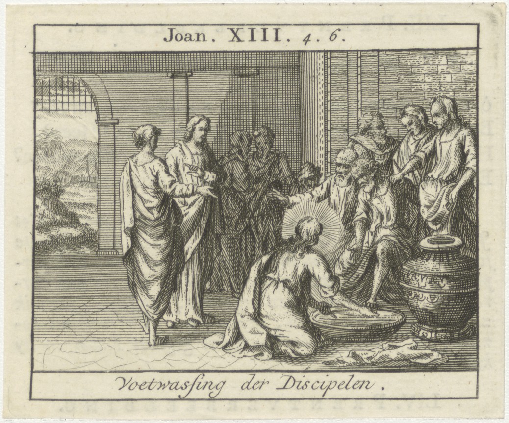 Bijbelscènes (serie): Voetwassing der Discipelen (Joh.13:4-6), kz. boekdruk niet corresponderend met voorzijde;