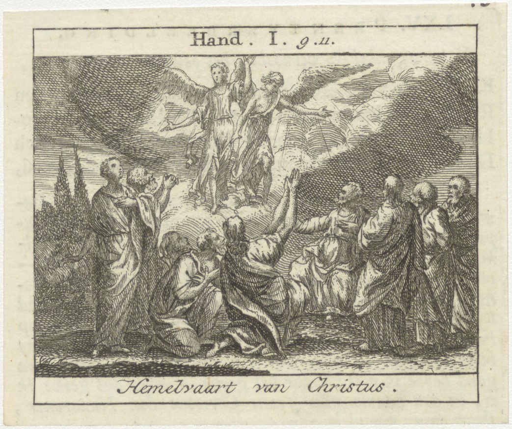 Bijbelscènes (serie): Hemelvaart van Christus (Hand.1:9-11), kz. boekdruk niet corresponderend met voorzijde;