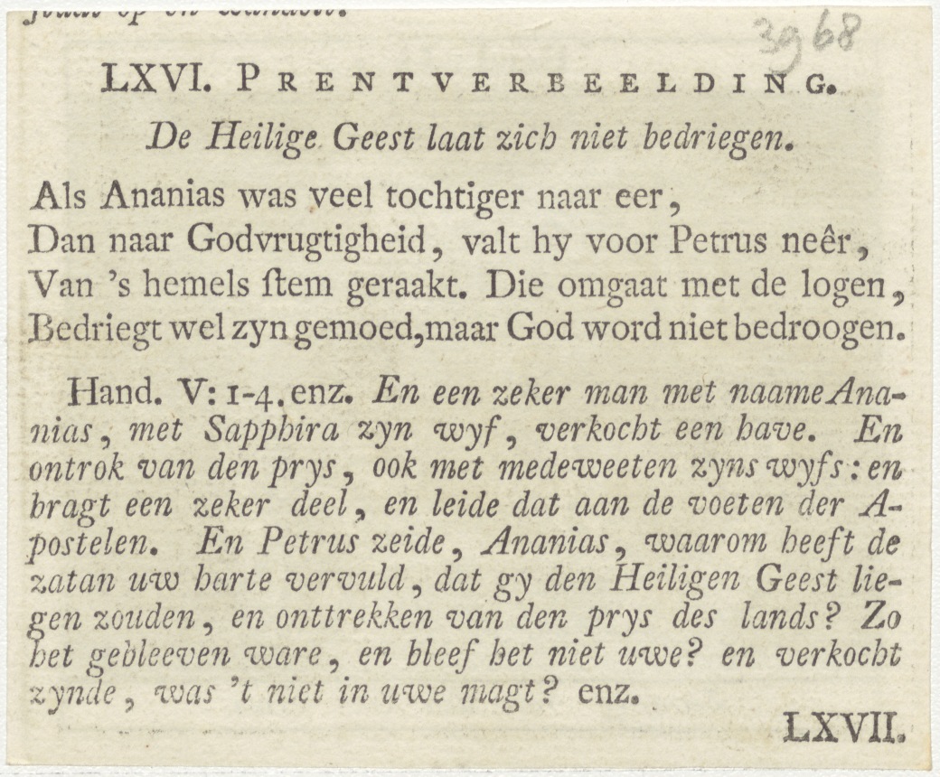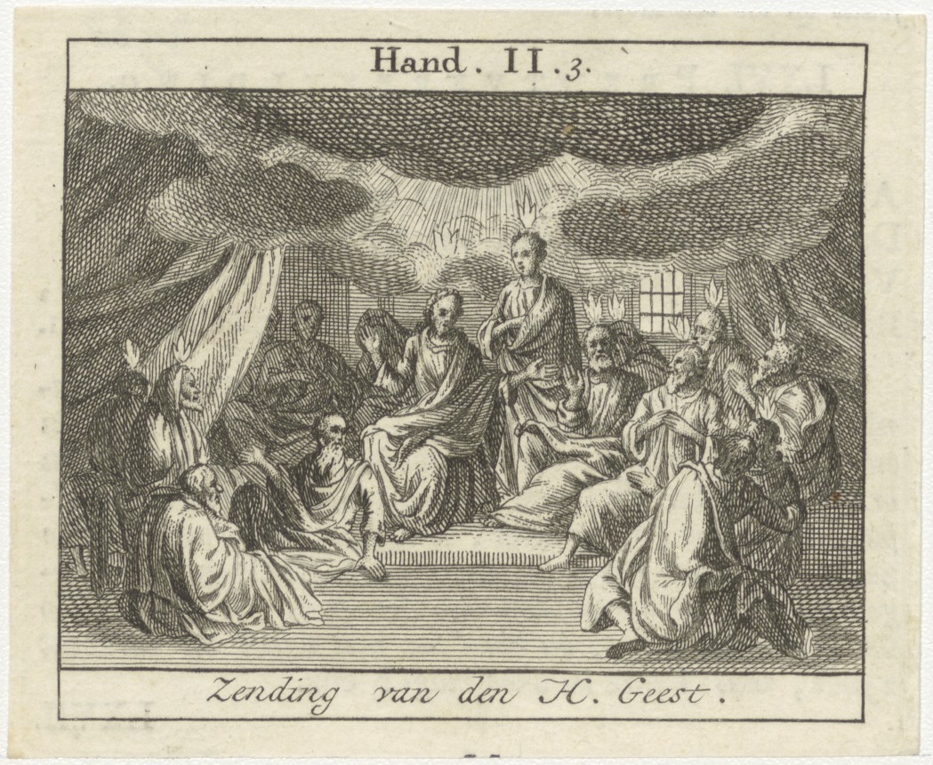Bijbelscènes (serie): Zending van den H. Geest (Hand.2:3), kz. boekdruk niet corresponderend met voorzijde;