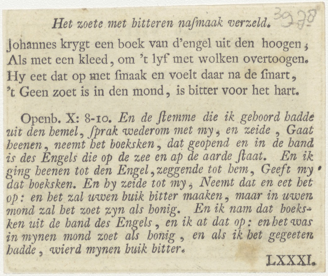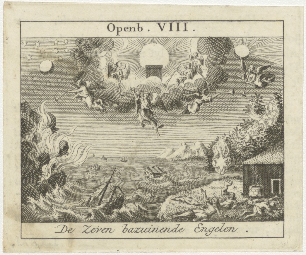 Bijbelscènes (serie): De zeven bazuinende engelen (Op.8), kz. boekdruk niet corresponderend met voorzijde;