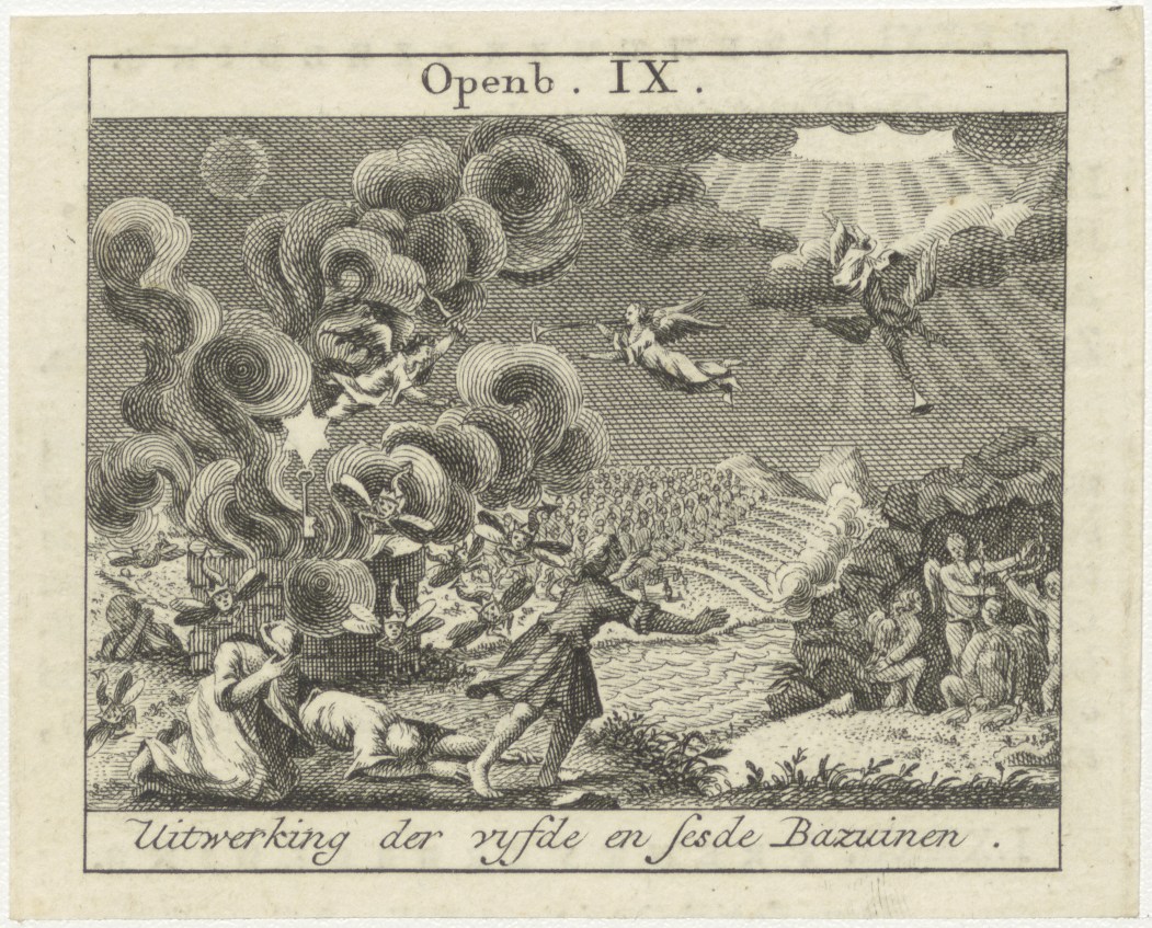 Bijbelscènes (serie): Uitwerking der vijfde en zesde bazuinen (Op.9), kz. boekdruk niet corresponderend met voorzijde;