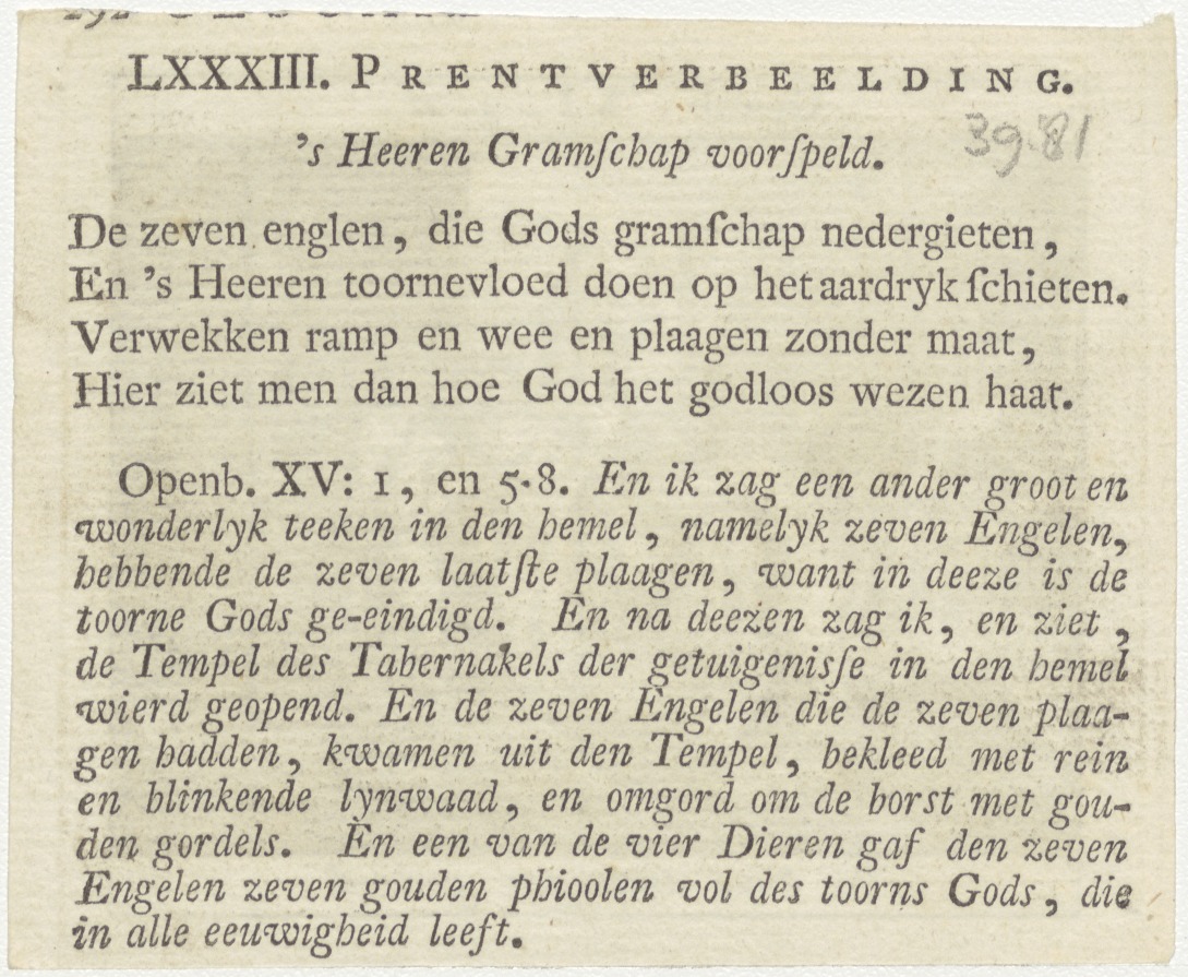 Bijbelscènes (serie): De twee getuigen gedood (Op.11:3-11), kz. boekdruk niet corresponderend met voorzijde;