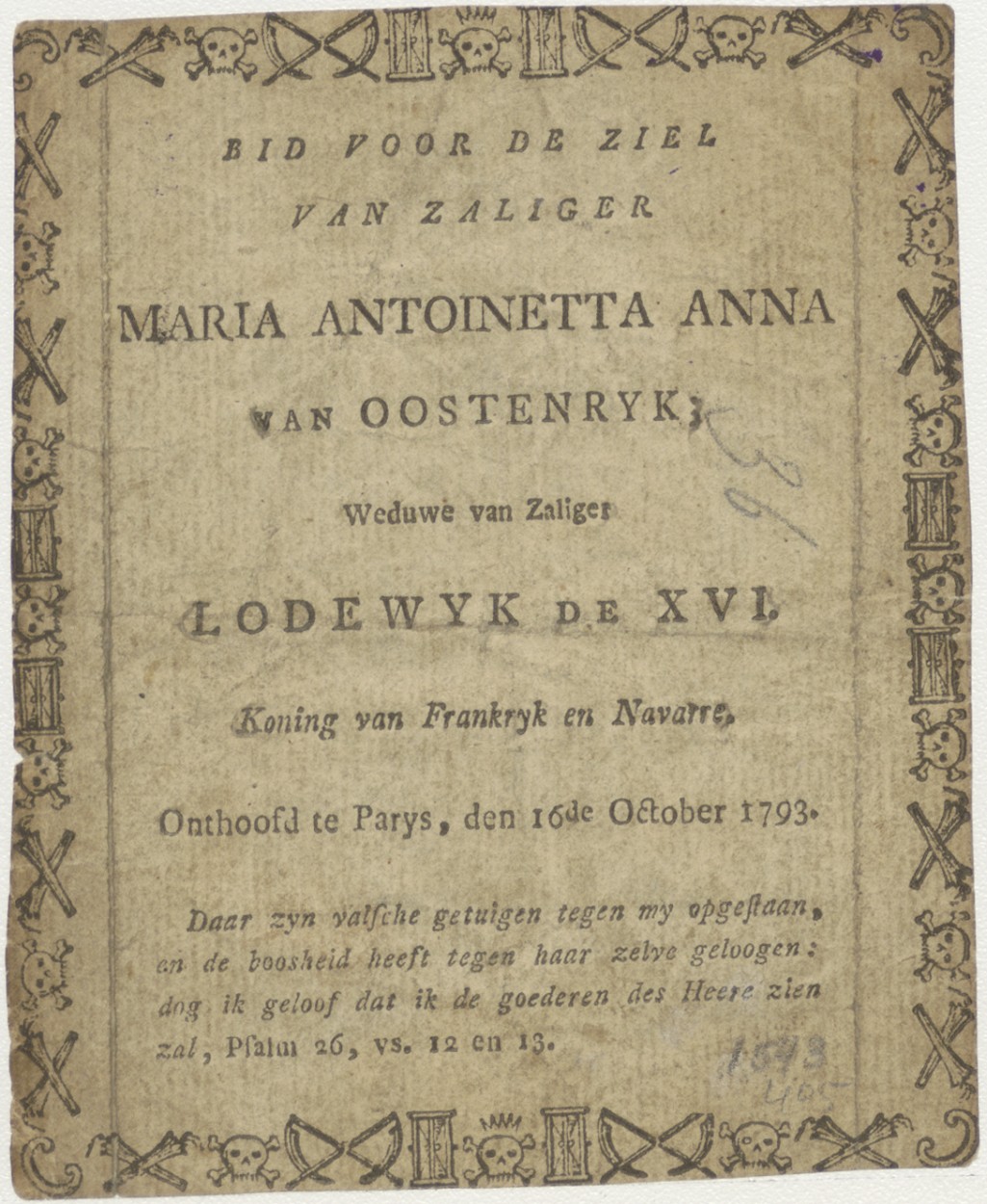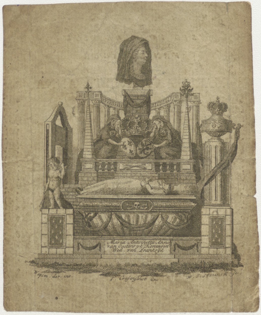 Grafmonument voor Marie Antoinette, kz. Bid voor ziel Marie Antoinette van Oostenrijk (+1793), weduwe van Lodewijk XIV