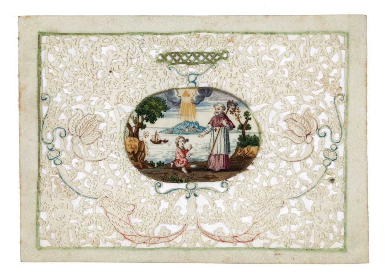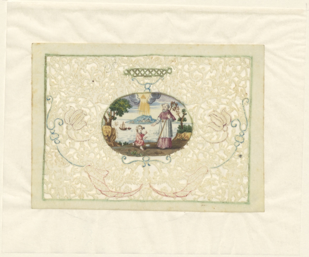 H. Augustinus met kind en het hemelse Jeruzalem, ingekleurd