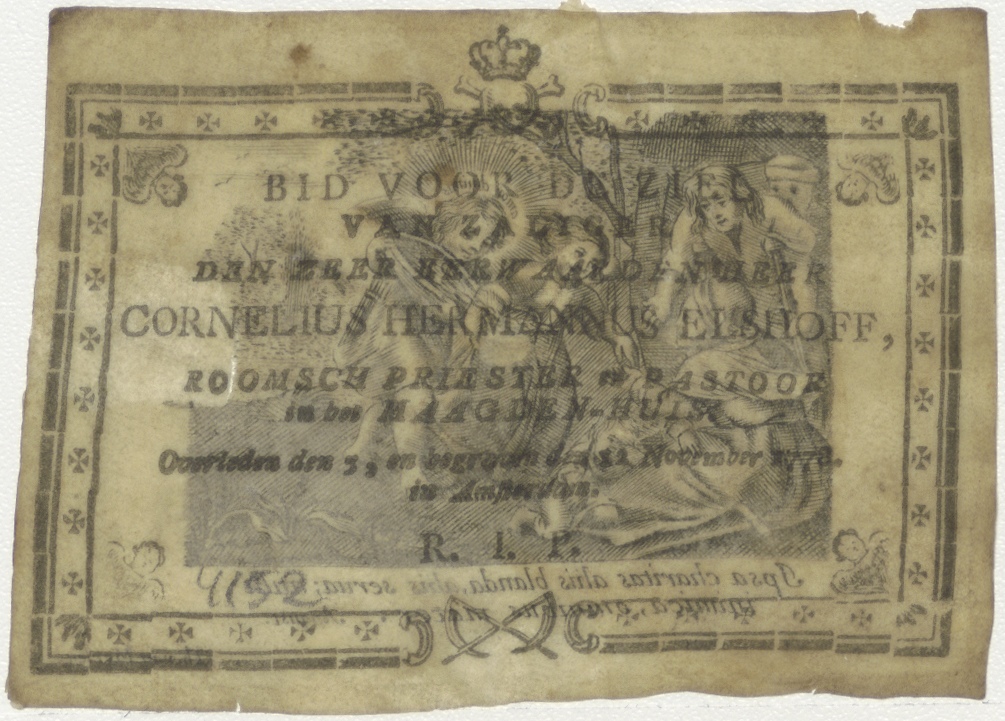 Amor divinus en Anima als charitas, kz. Religieus; bid voor ziel Cornelius Elshoff (+1772) pastoor maagdenhuis Amsterdam