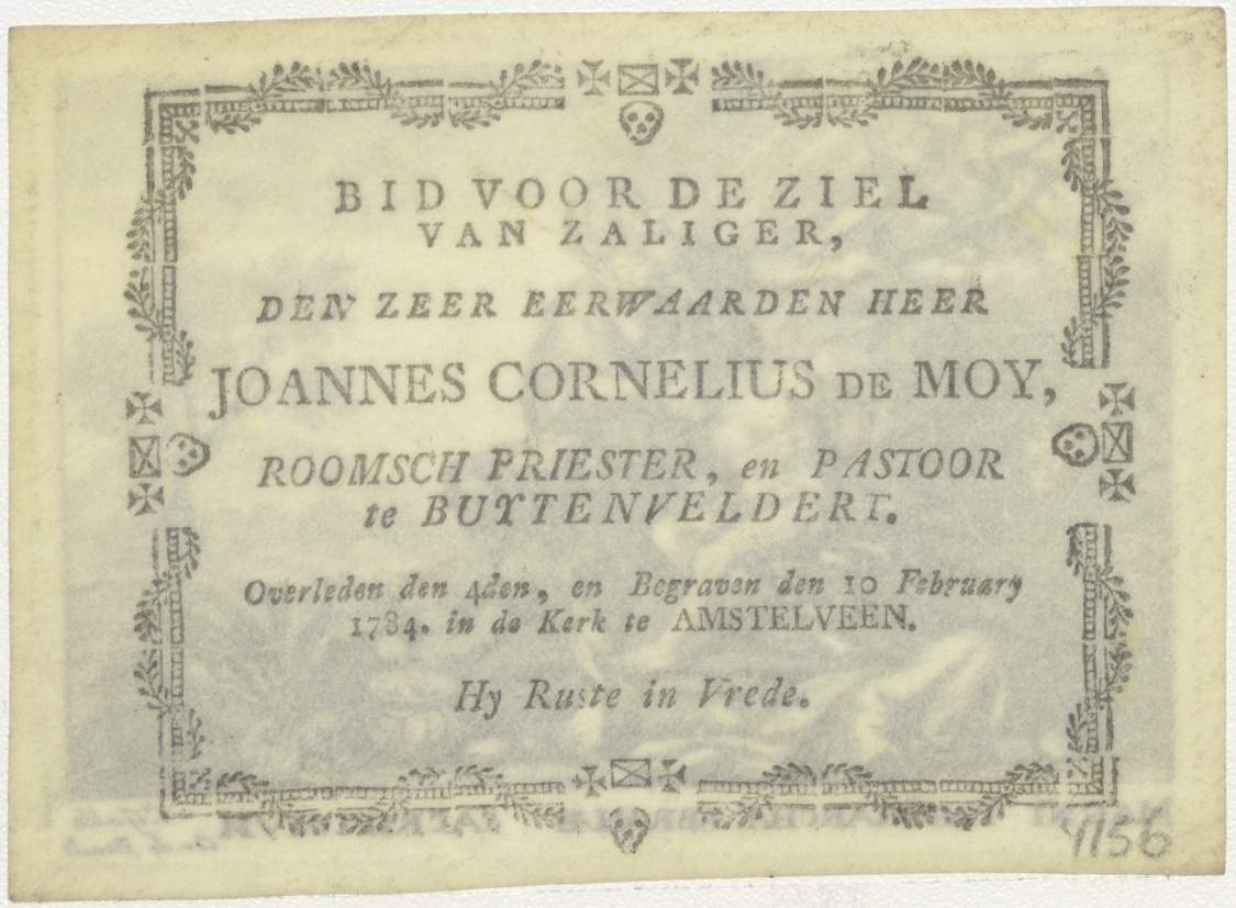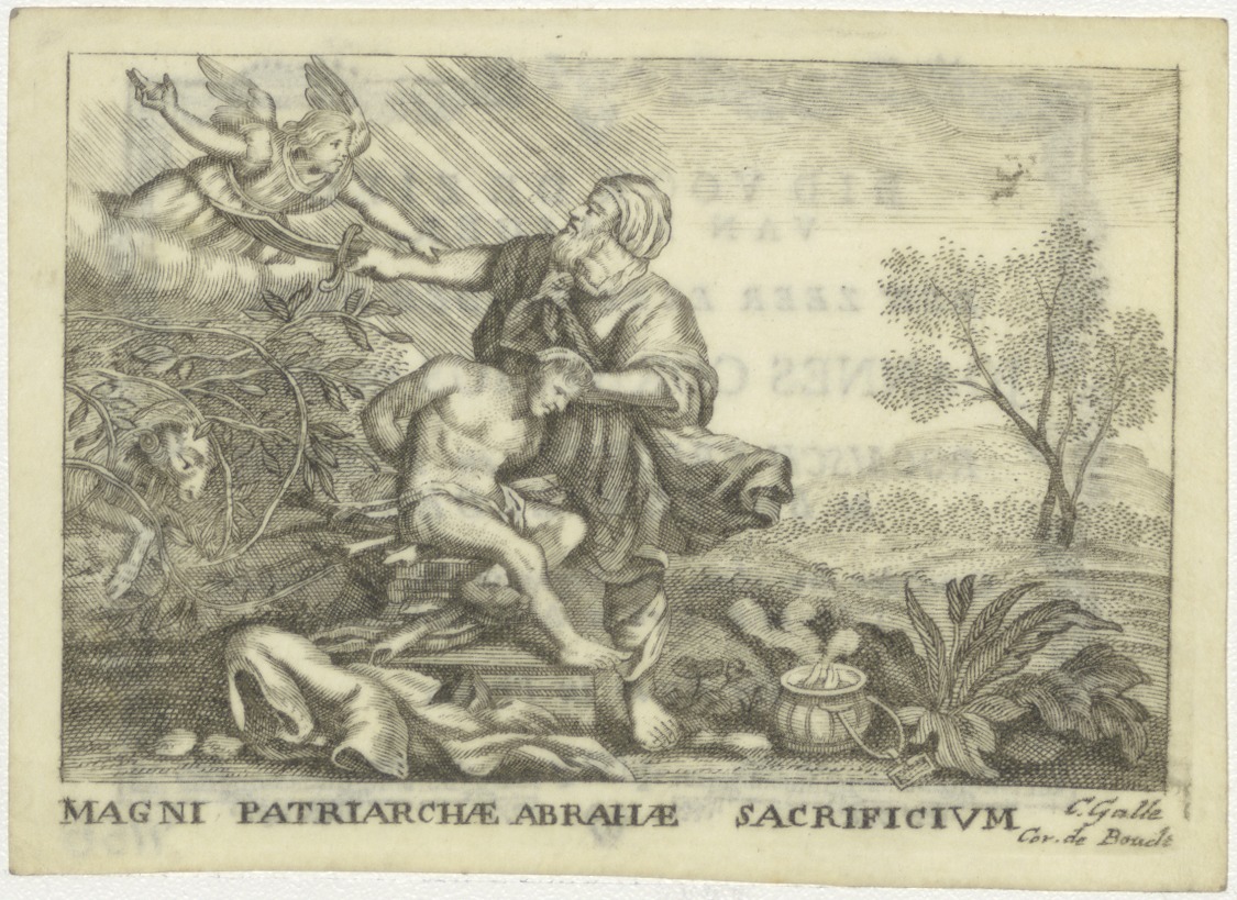 Jacob offert Isaac, kz. Religieus; bid voor ziel Johannes de Moy (+1784) pastoor te Buytenveldert, Amstelveen
