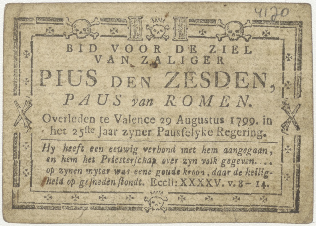 H. Benedictus, kz. Religieus; bid voor ziel Pius VI (+1799) paus van Rome