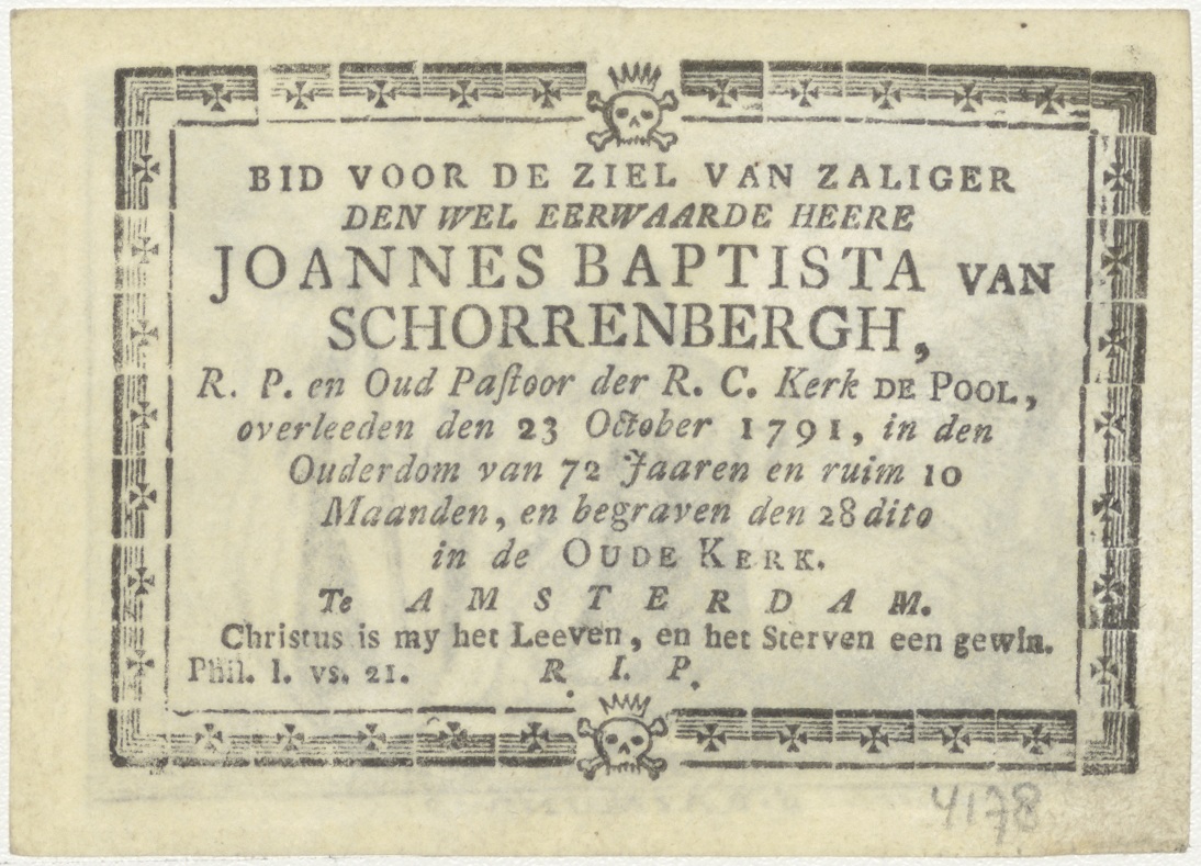 H. Raymundus, kz. Religieus; bid voor ziel Joannes van Scharrenbergh (+1791) pastoor De Pool, Amsterdam