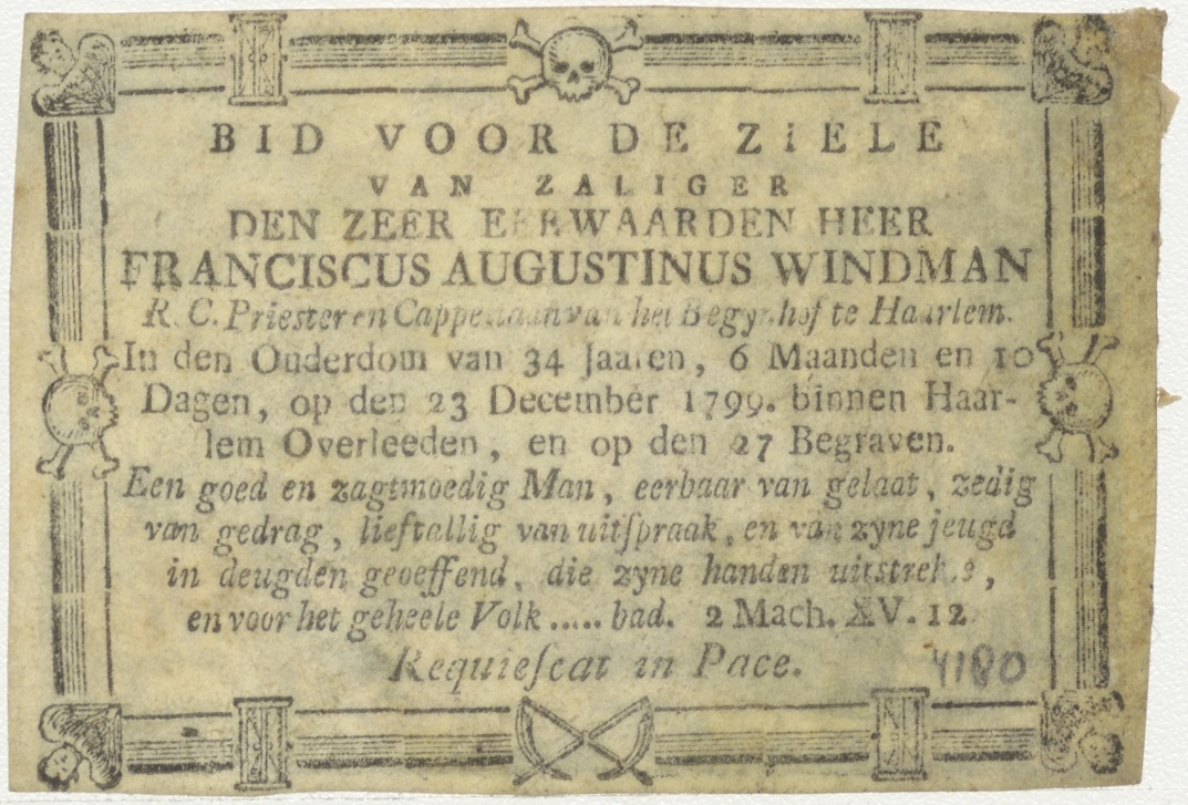Christus intocht in Jeruzalem, kz. Religieus; bid voor ziel Franciscus Windman (+1799) pastoor begijnhof Haarlem