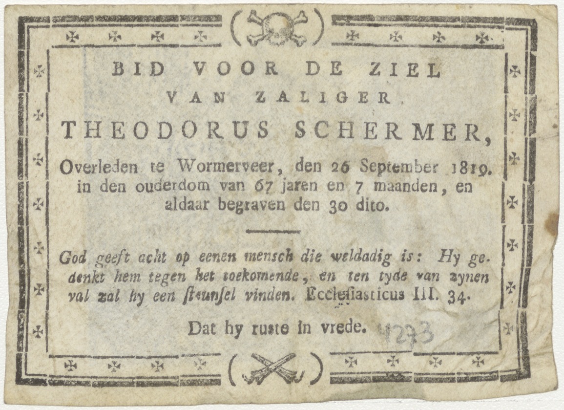 Christus Ecce Homo, kz. Bid voor ziel Schermer (+1819) Wormerveer