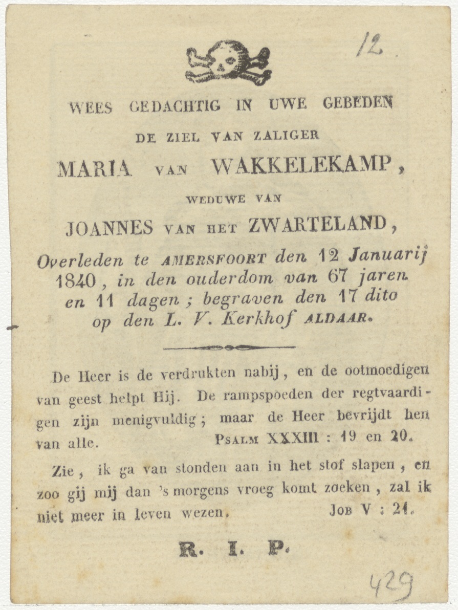 H. Dominicus, kz. Bid voor ziel Van Wakkelekamp (+1840);Amersfoort