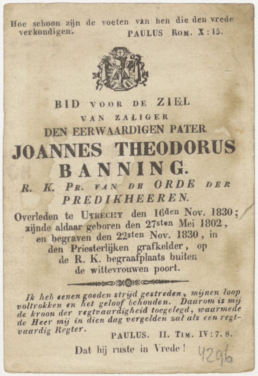 H. Melanie (Frans), kz. Religieus; bid voor ziel Joannes Banning (+1830) predikheer te Utrecht