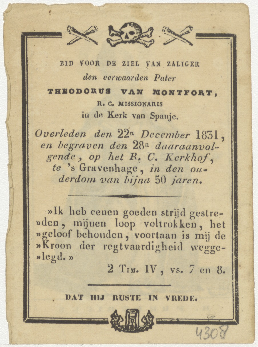 H. Fredericus, kz. Religieus; bid voor ziel Theodorus van Montfort missionaris in de kerk van Spanje (+1831)