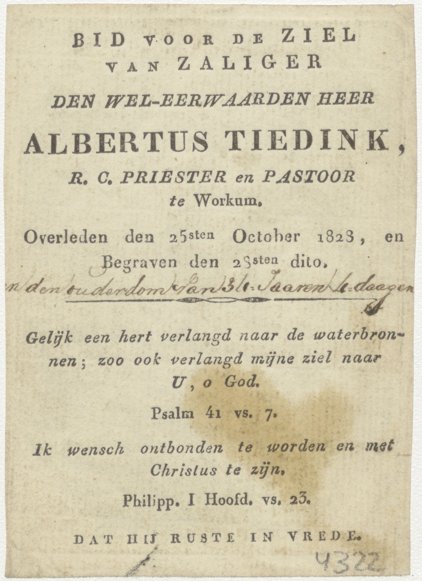 H. Simeon, kz. Religieus; bid voor ziel Albertus Tiedink (+1828) pastoor te Workum