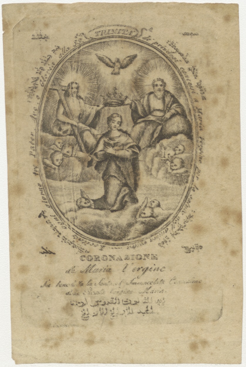 Kroning van Maria door de H. Drievuldigheid (drie-eenheid), kz. tekst (Frans)