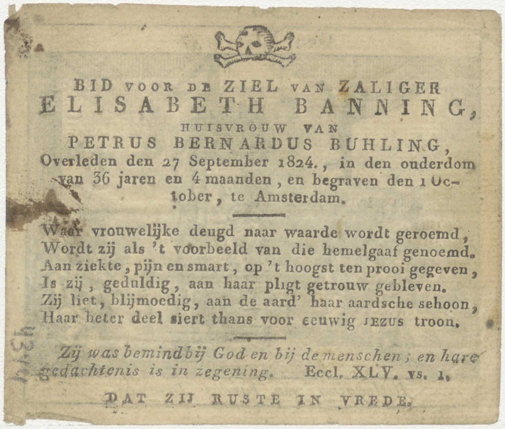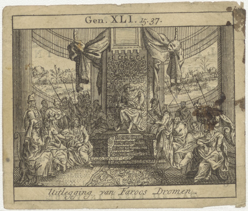 Jozef legt de dromen van de farao uit, kz. Bid voor ziel Banning-Buhling (+1824) Amsterdam