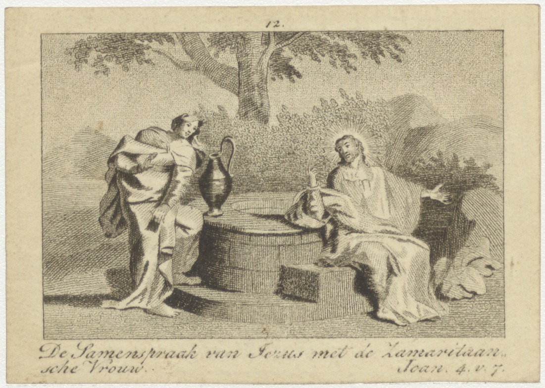 Christus met de Samaritaanse vrouw bij de bron, kz. Bid voor ziel Van Nie (+1820) Utrecht