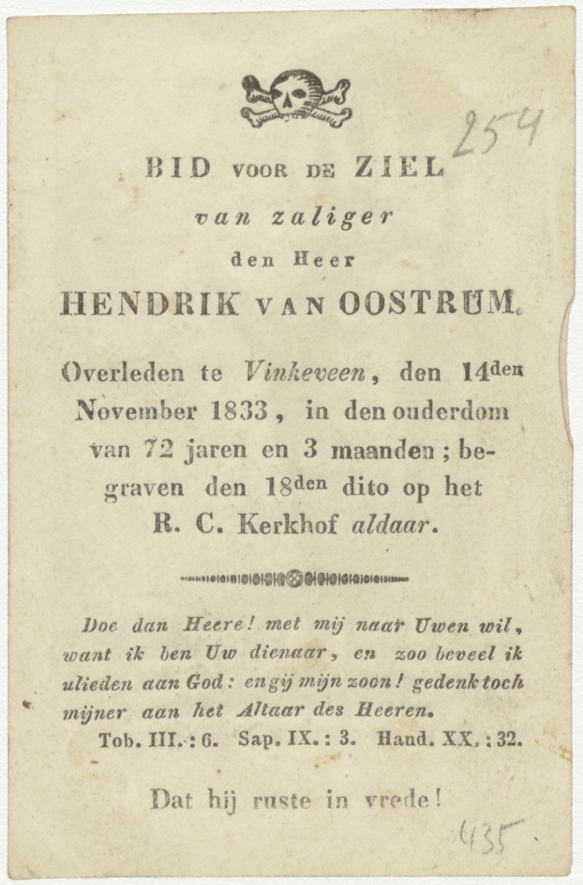 H. Willibaldus, kz. Bid voor ziel Van Oostrum (+1833);Vinkeveen