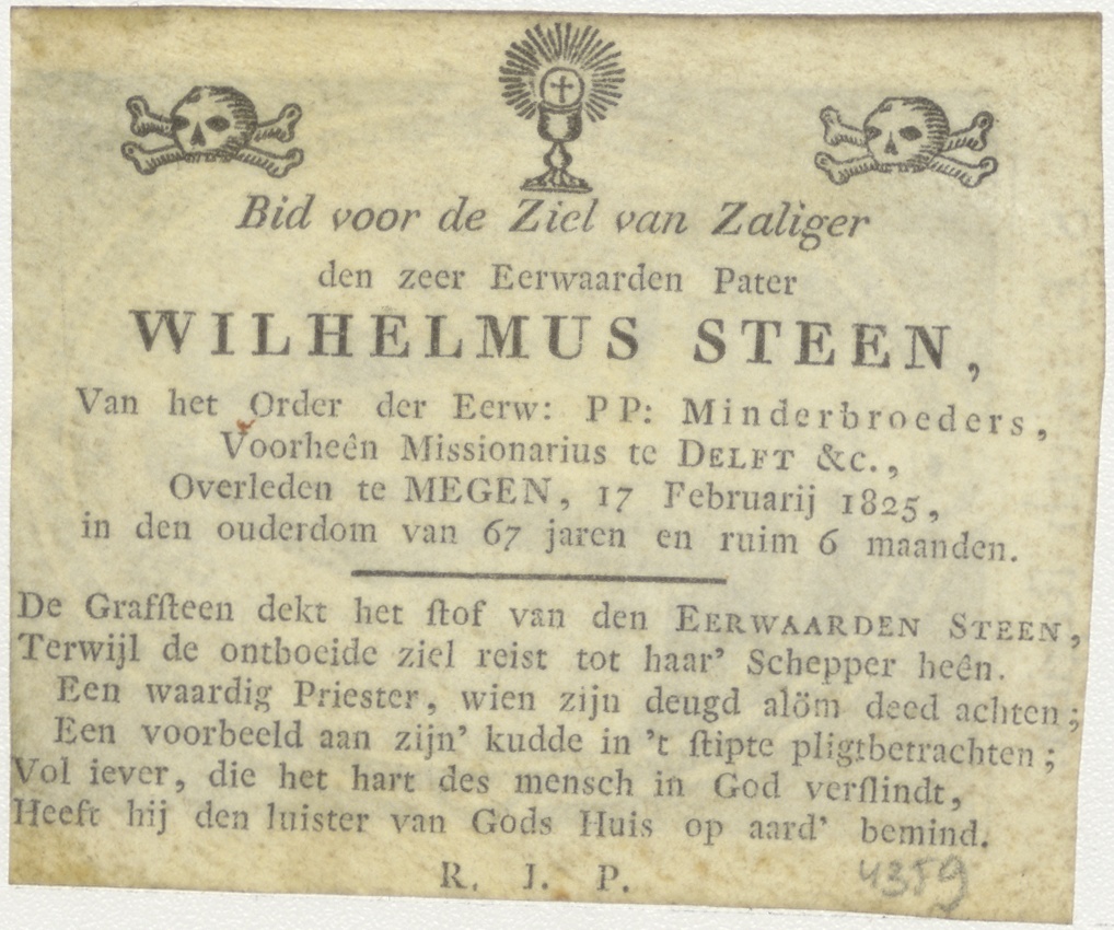 H. Elisabeth Regina, kz. Religieus; bid voor ziel Wilhelmus Steen (+1825) minderbroeder te Megen
