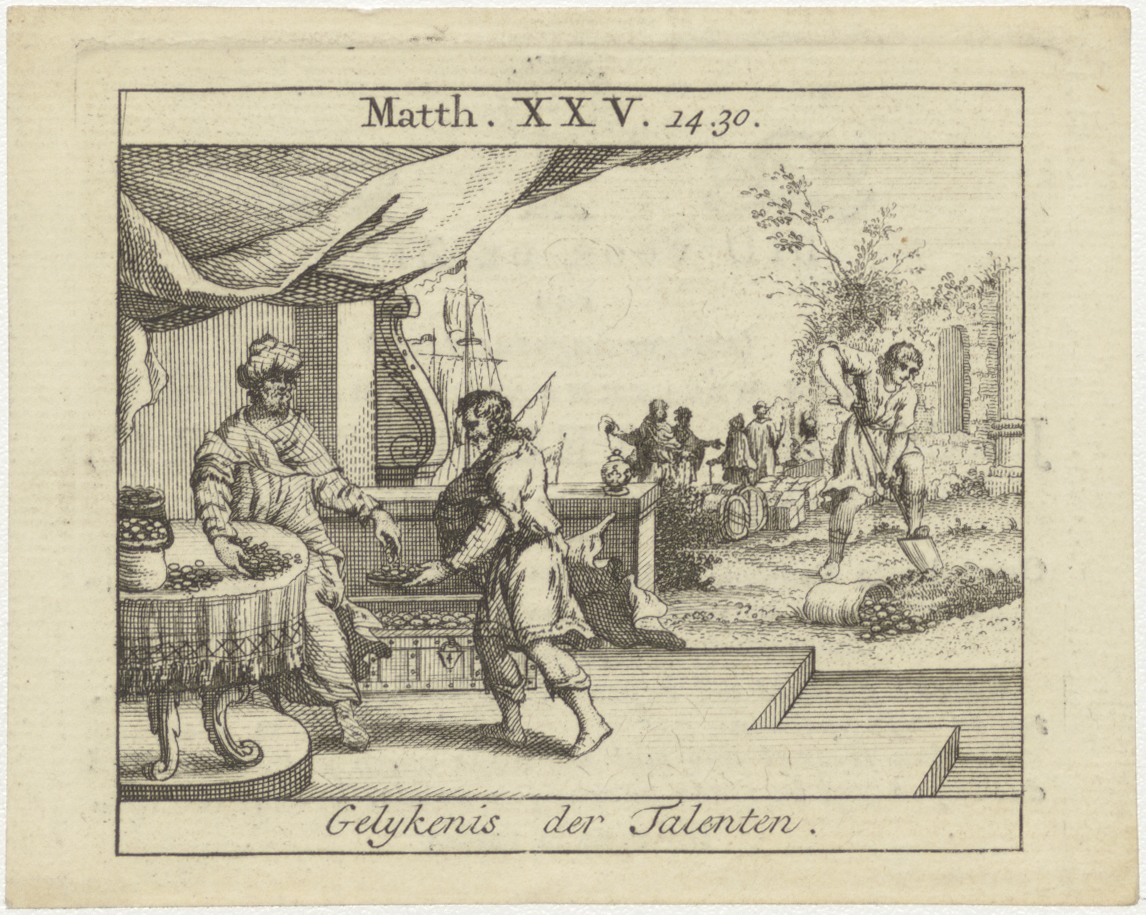 Gelijkenis van de Talenten, kz. Religieus; bid voor ziel Stekelenburg (+1825) pastoor te Sandvoort en Laren