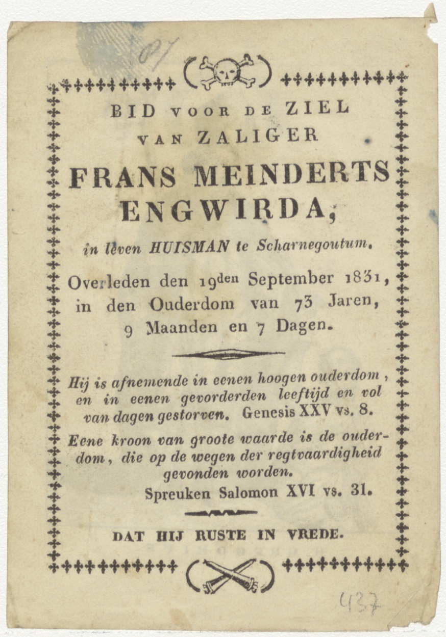 H. Gregorius van Utrecht, bisschop, kz. Bid voor ziel Meinderts Engwirda (+1831);Scharnegoutum