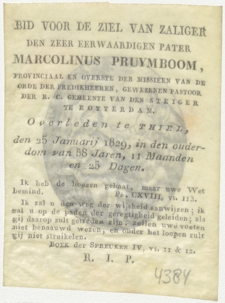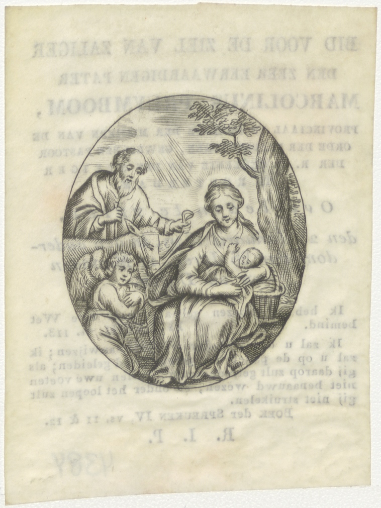 Rust op vlucht naar Egypte, kz. Religieus; bid voor ziel Marcolinus Pruymboom (+1829) provinciaal, predikheer De Steiger Rotterdam