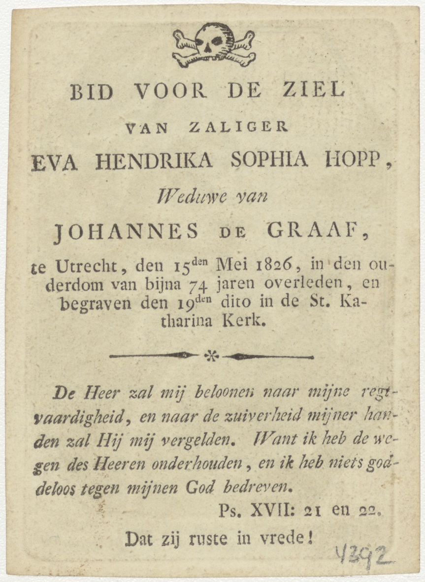H. Petrus Ambianensis, kz. Bid voor ziel Hopp-de Graaf (+1826) Utrecht