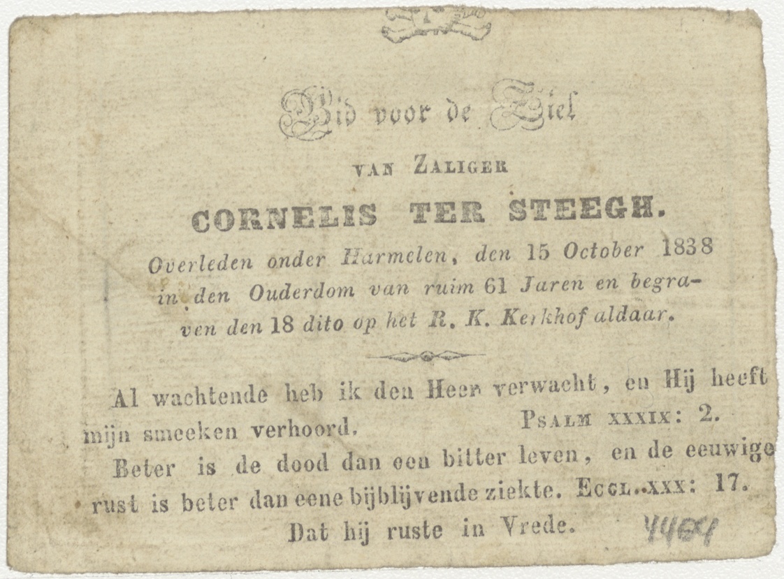 Nebucadnezar bij de beesten, kz. Bid voor ziel Ter Steegh (+1838) Harmelen