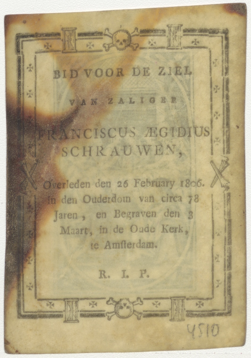 Laatste avondmaal, kz. Bid voor ziel Franciscus Aegidius Schrauwen (+1806) Amsterdam