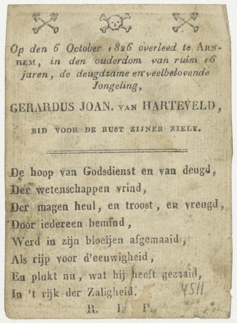 O.L. Vrouwe, Maria (Spaans), kz. Bid voor ziel Van Harteveld (+1826) Arnhem