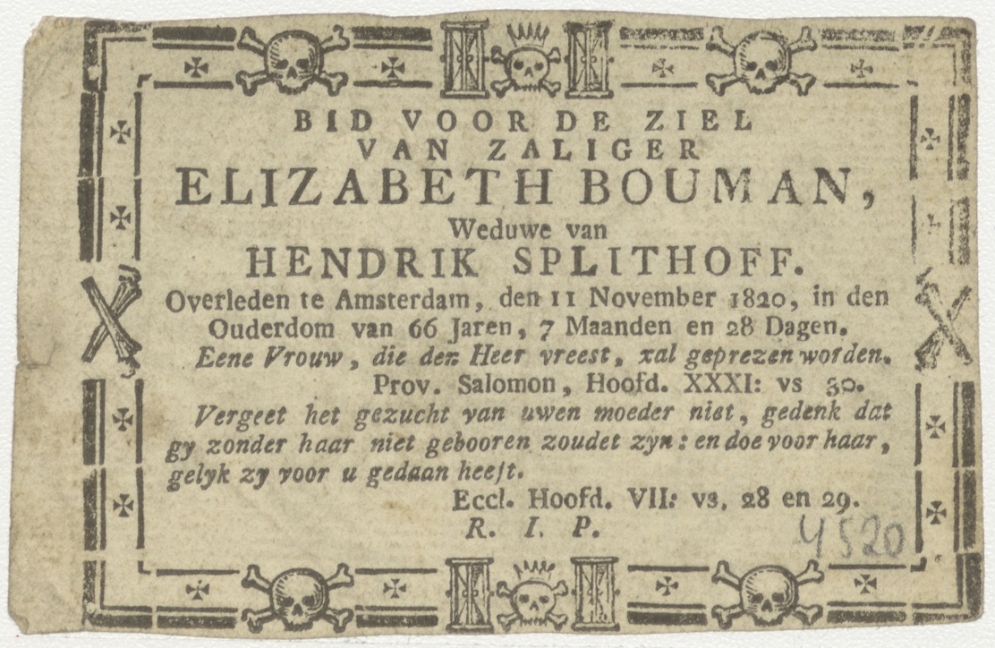 Christus en Maria, kz. Bid voor ziel Bouman-Splithoff (+1820) Amsterdam