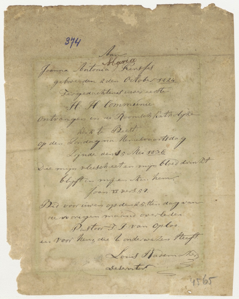 H. Elisabeth regina, ingekleurd, kz. H. Communie Kersjes, 1824 Beest door Louis Rademakers