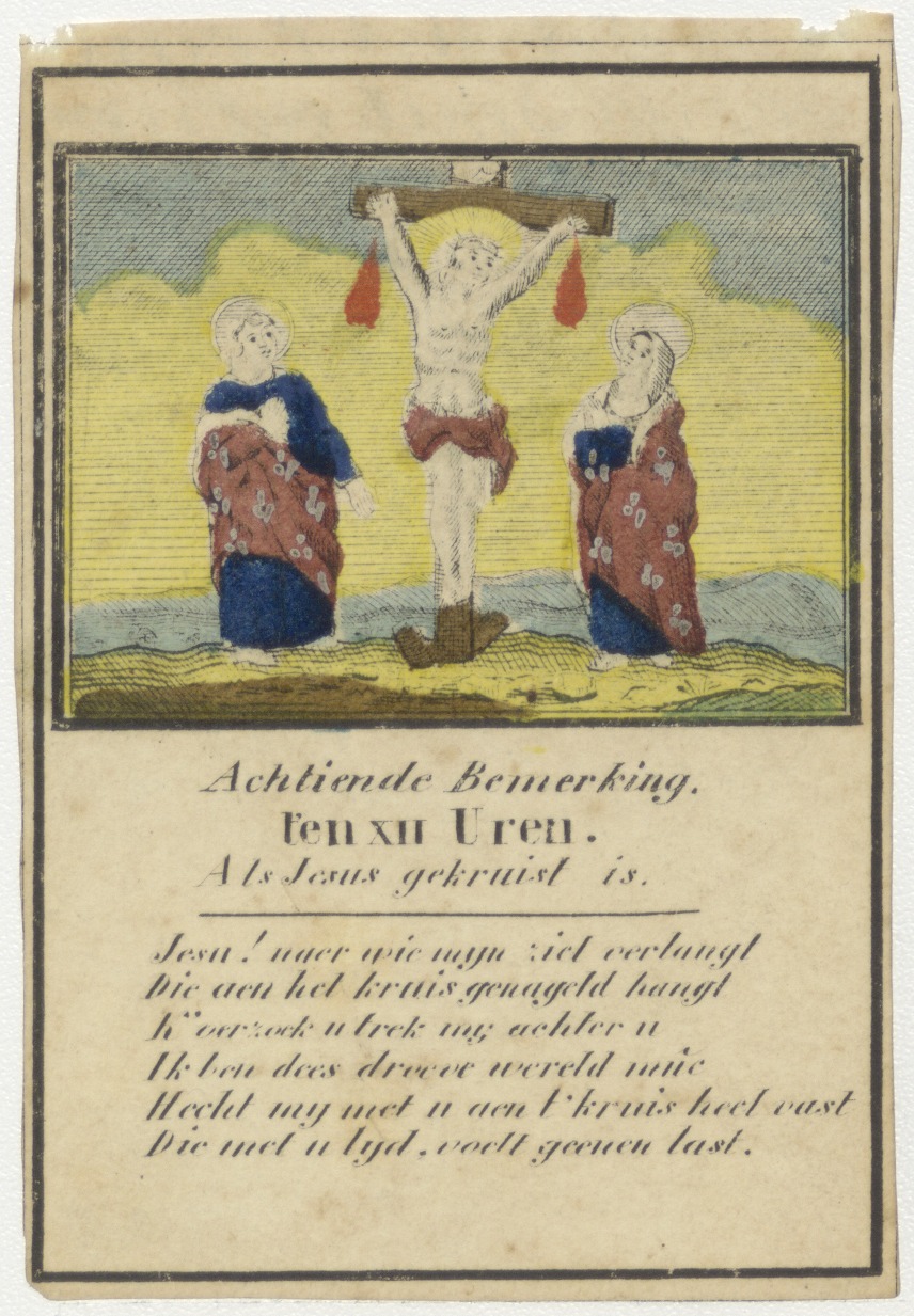 Passie (serie): achttien, Christus gekruisigd, met gebed, ingekleurd