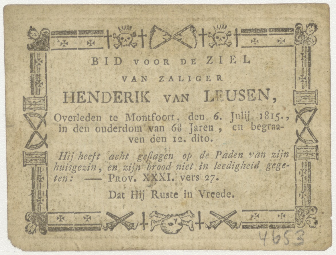 H. Clara, kz. Bid voor ziel Henderik van Leusen (+1815), Montfoort