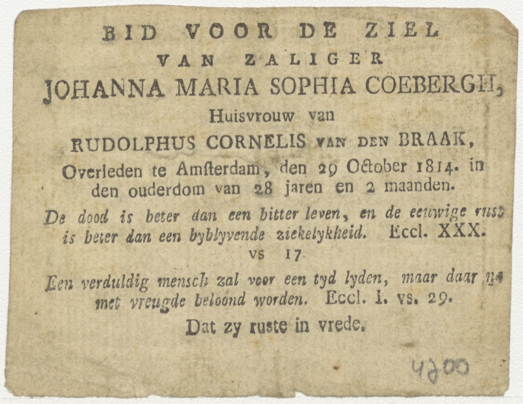 Christus slaapt op zee, kz. Bid voor ziel Coebergh-van den Braak Amsterdam (+1814)