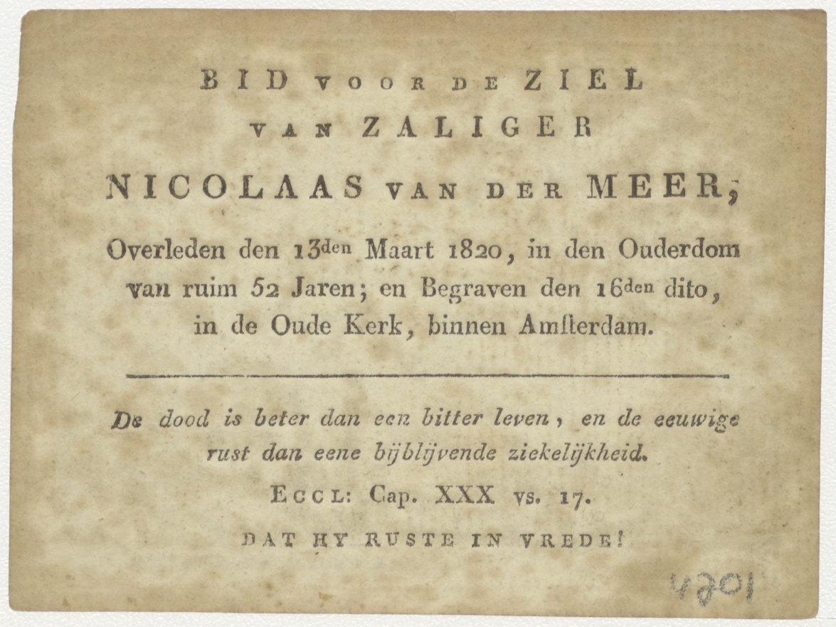 Christus ontvangt het H. Sacrament in de tuin van Getsemané, kz. Bid voor ziel Van der Meer (+1820) Amsterdam