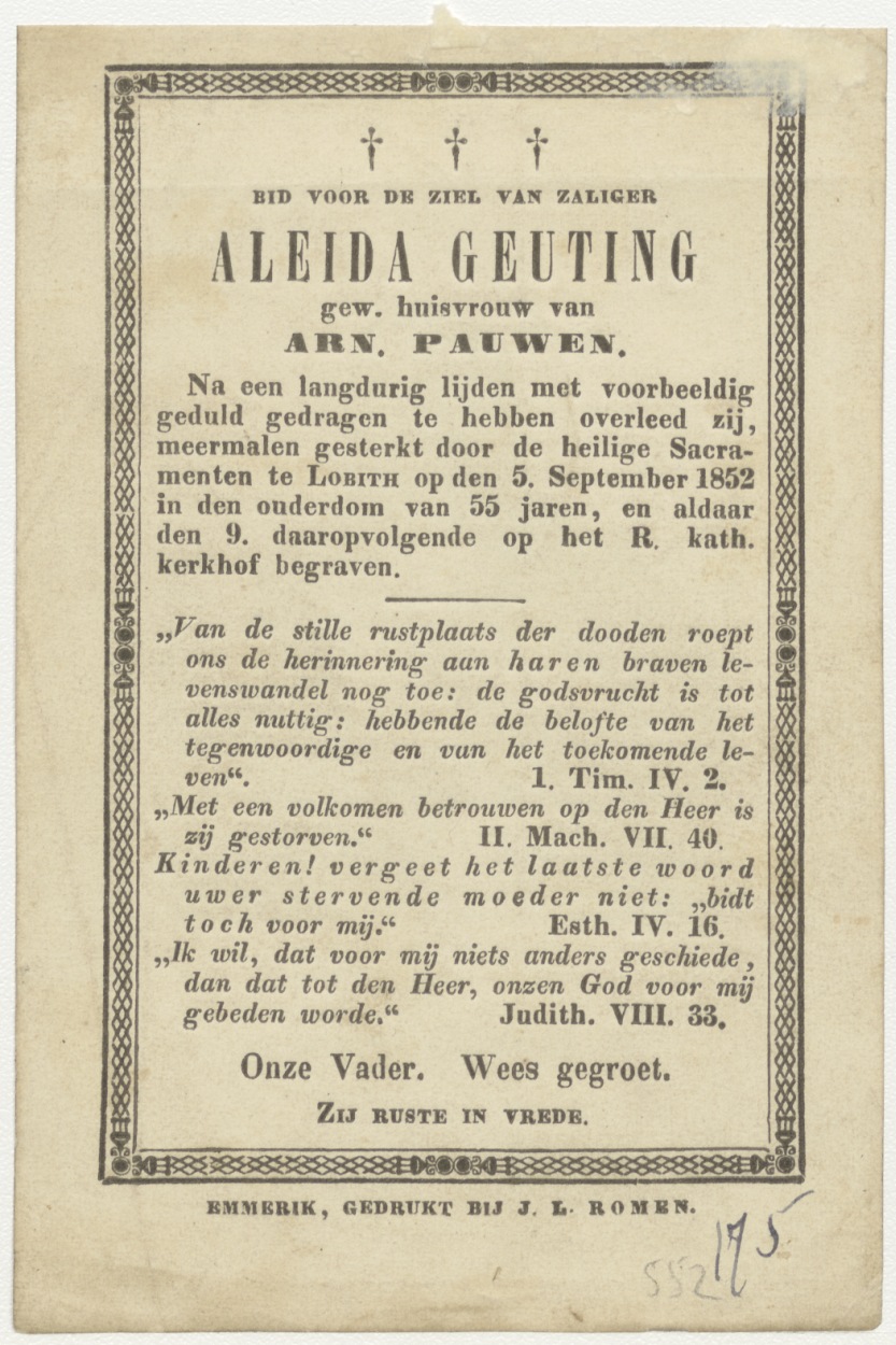 H. Dominicus, kz. Bid voor ziel Geuting (+1852);Lobith