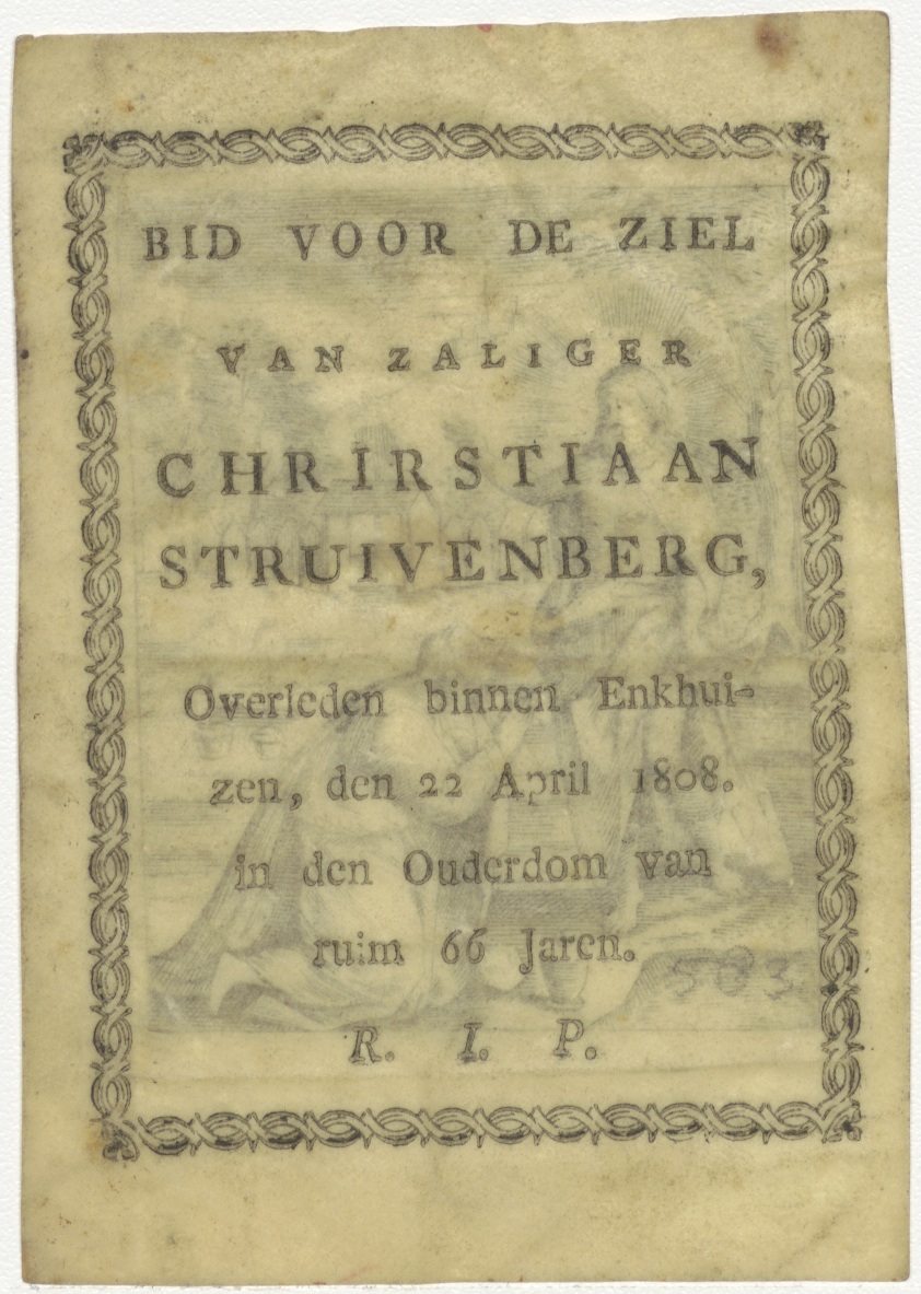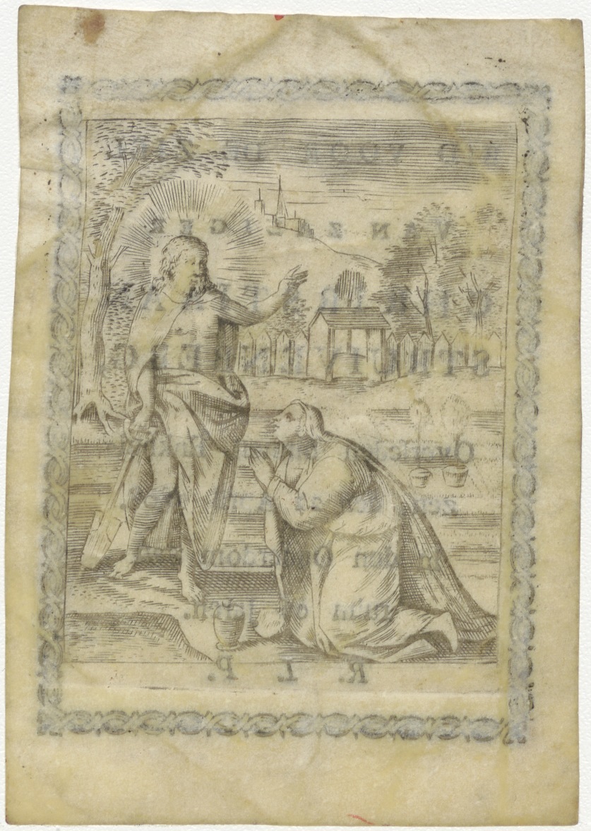 Christus verschijnt aan Maria Magdalena, kz. Bid voor ziel Struikenberg (+1808);Enkhuizen