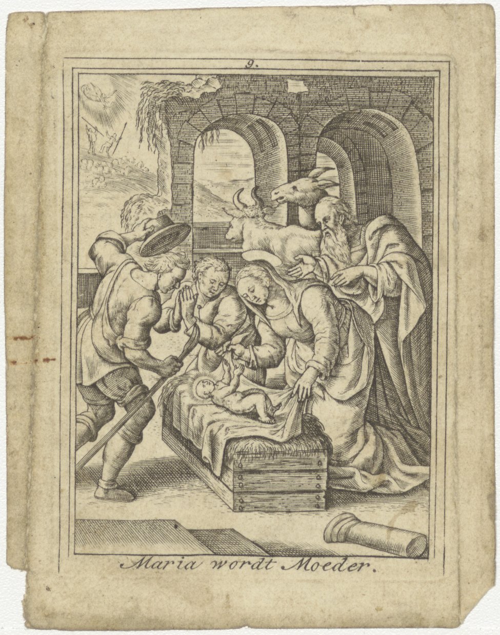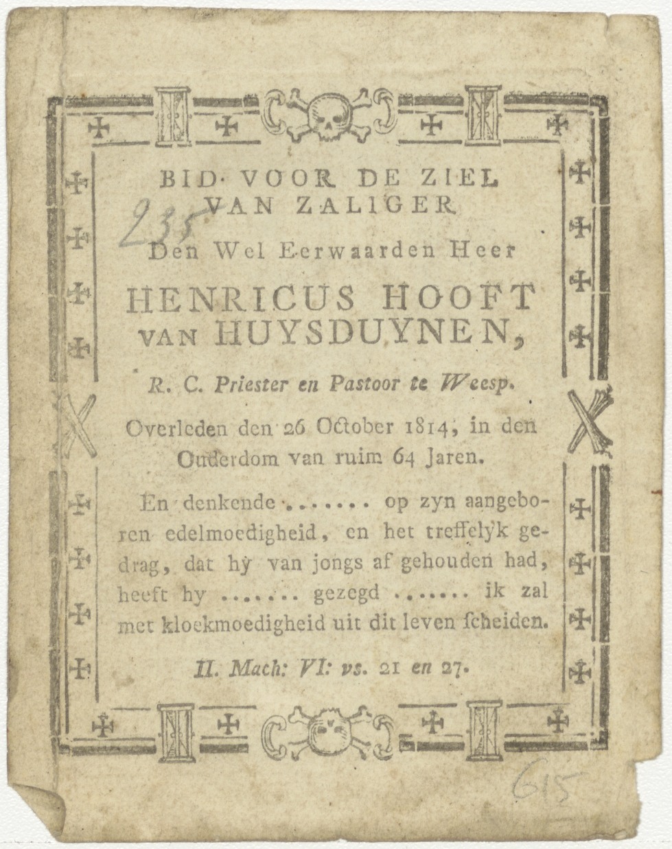 Aanbidding der herders, kz. Religieus;Bid voor ziel Henricus Hooft van Huysduynen (+1814);R.K. priester en pastoor Weesp