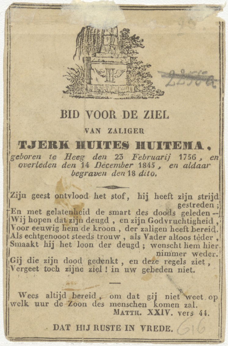 H. Monica, kz. Bid voor ziel Huitema (+1845);Heeg
