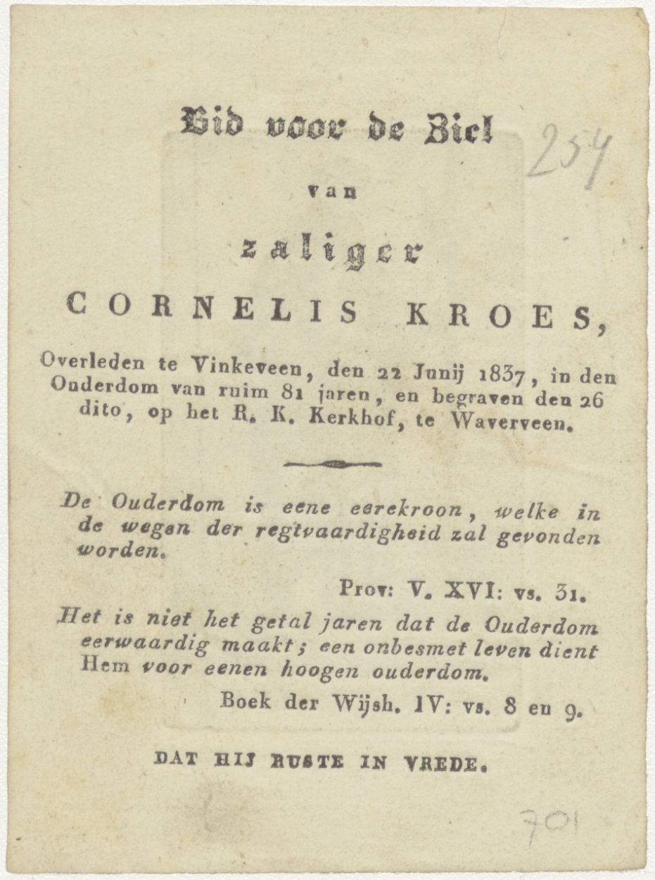 H. Mattheus, kz. Bid voor ziel Kroes (+1837);Vinkeveen