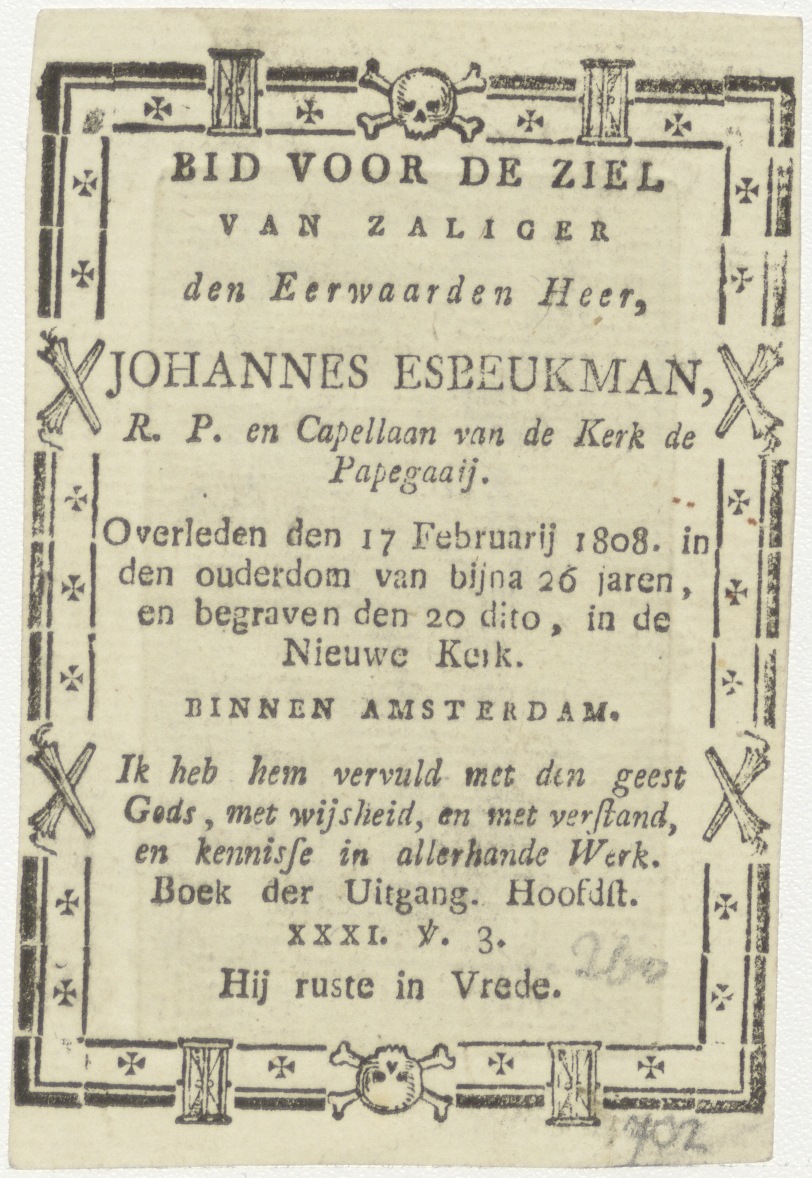 Christus als zaligmaker, met kruisbanier, kz. Religieus;Bid voor ziel Joannes Esbenkman (+1858);Papegaay;Amsterdam;begraven Nieuwe Kerk