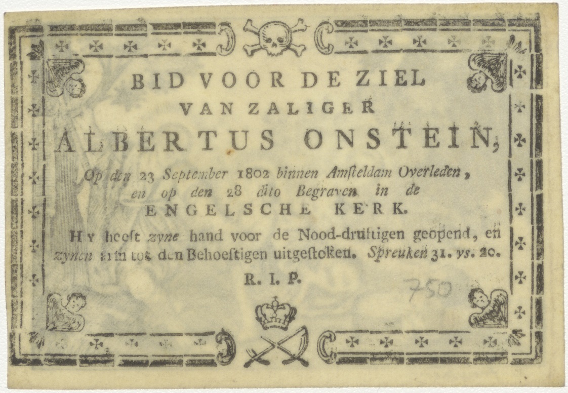 H. Familie aan de arbeid, kz. Bid voor ziel Onstein (+1802);Engelsche kerk;Amsterdam