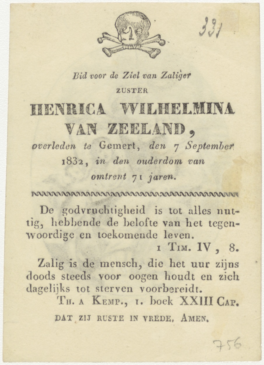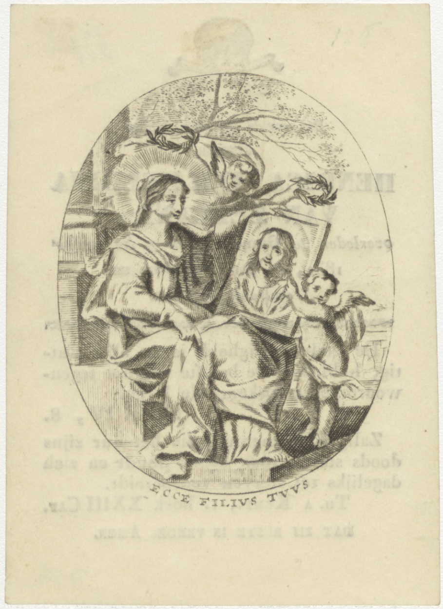 Maria zittend met portret Christus op schoot, vastgehouden door engeltje, kz. Bid voor ziel Van Zeeland (+1832);Gemert