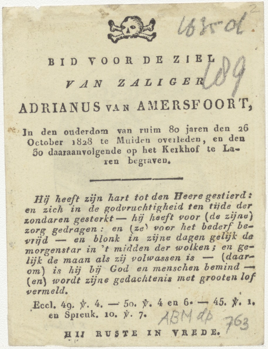 H. Bernardus, kz. Bid voor ziel Van Amersfoort (+1828);Muiden