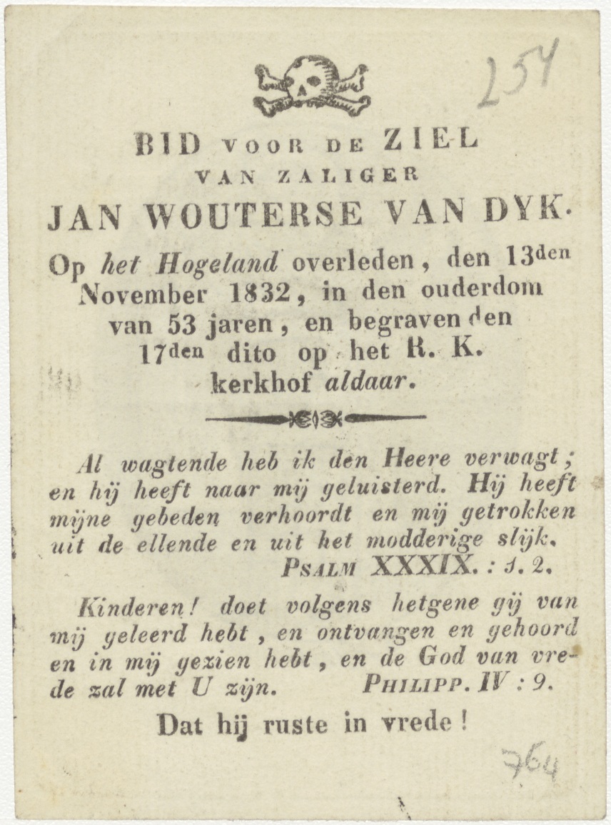 H. Hyacinthus, kz. Bid voor ziel Van Dijk (+1832);Hoogland
