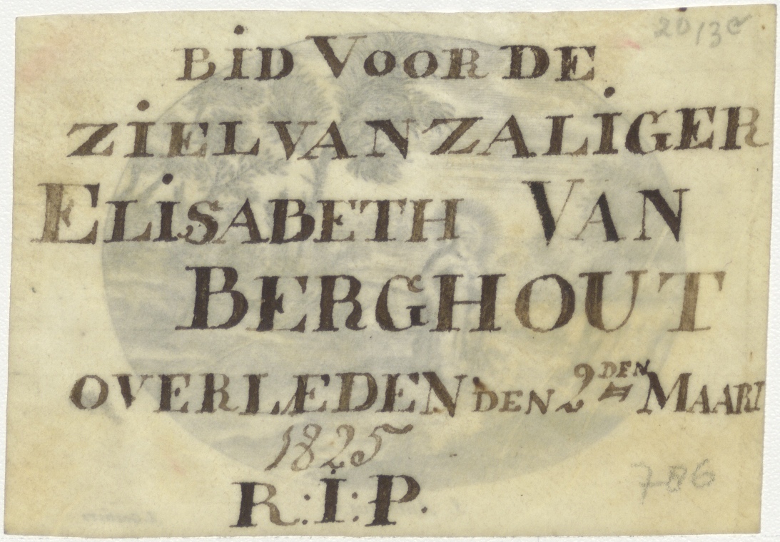 H. Antonius, abt, kz. Bid voor ziel Van Berghout (+1825)