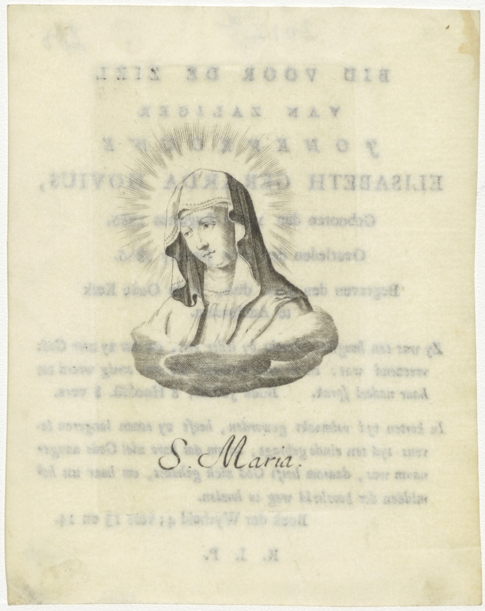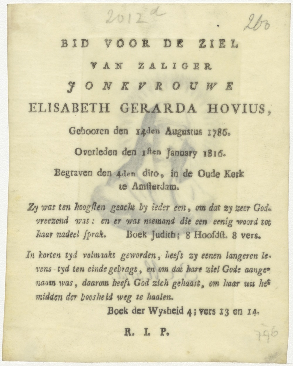 H. Maria (borstbeeld), kz. Bid voor ziel jonkvrouwe Elisabeth Gerarda Hovius (+1816);Oude Kerk;Amsterdam