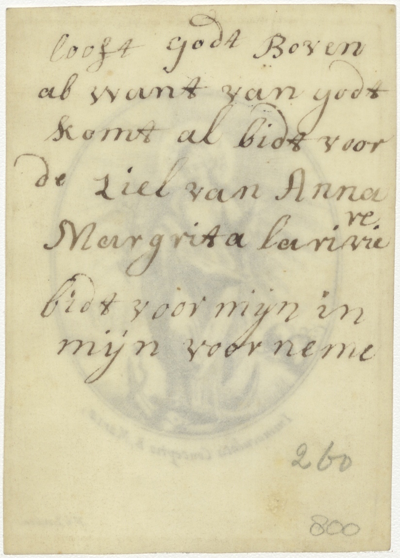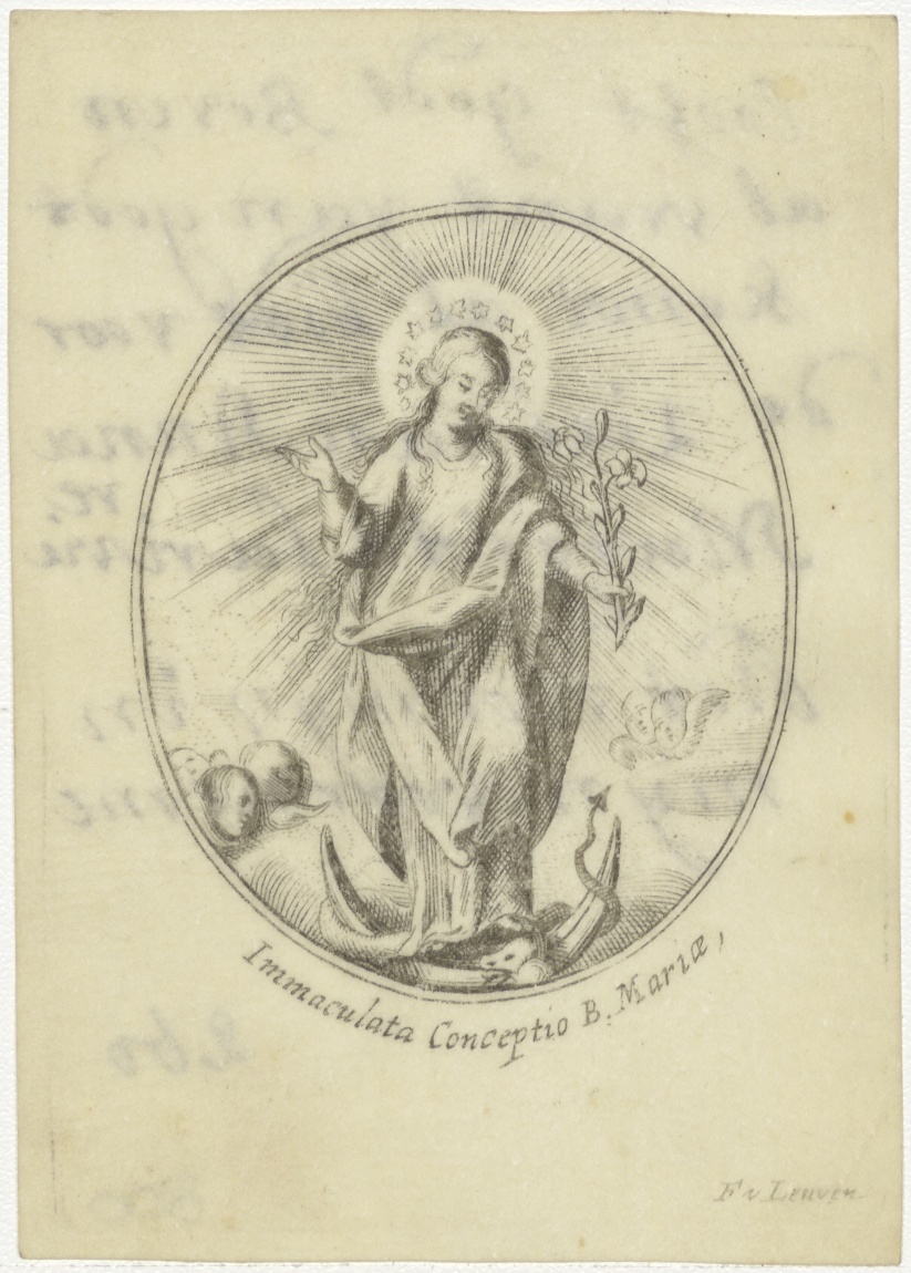 Maria onbevlekt ontvangen, kz. Looft God bovenal, want van God komt al;Bid voor ziel Larieve