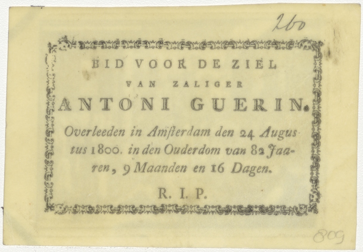 Genezing van de lamme, kz. Bid voor ziel Antoni Guerin (+1800);Amsterdam